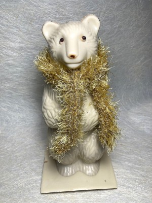 Teddybeer L met sjaal goudkleur - witte chocolade.